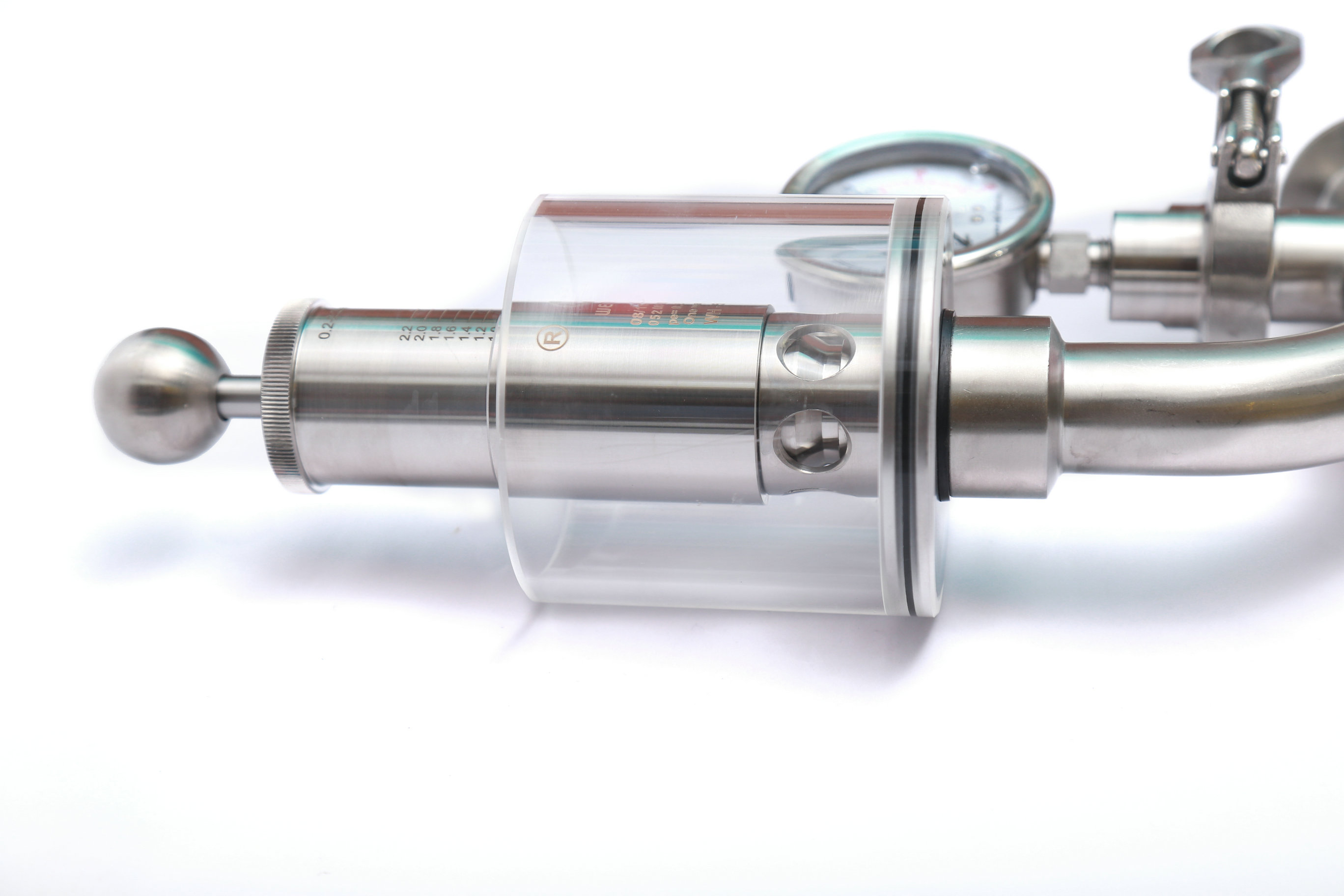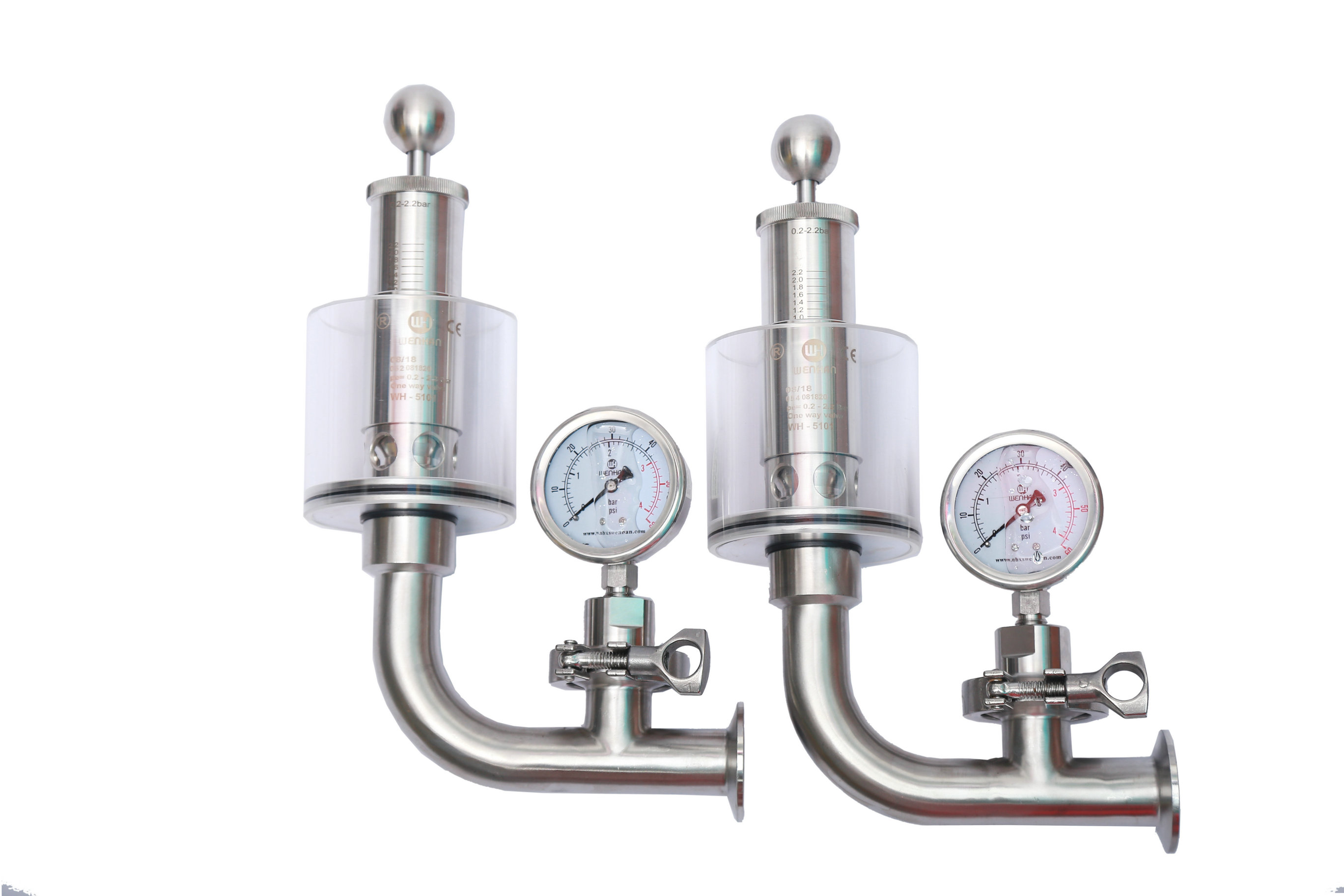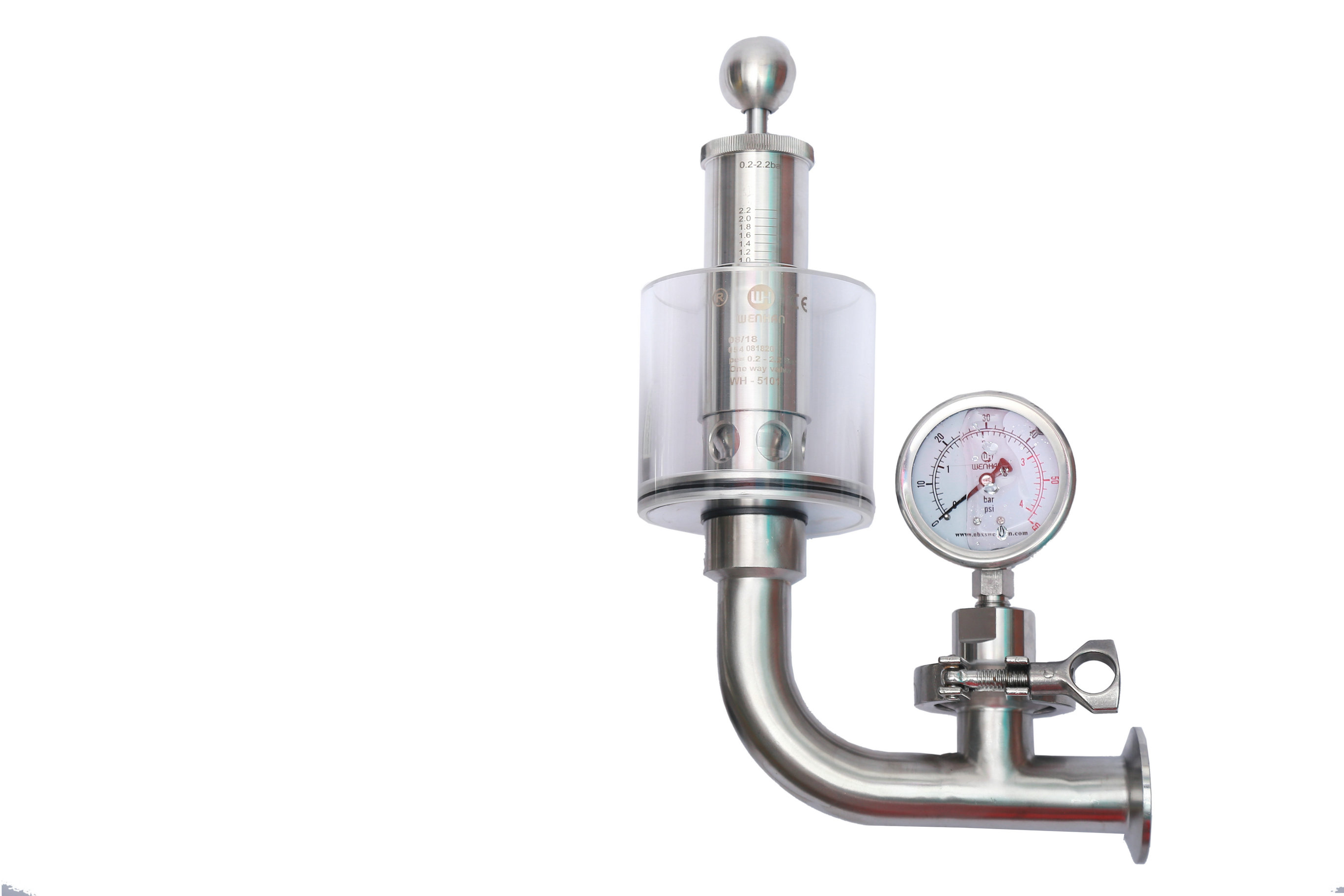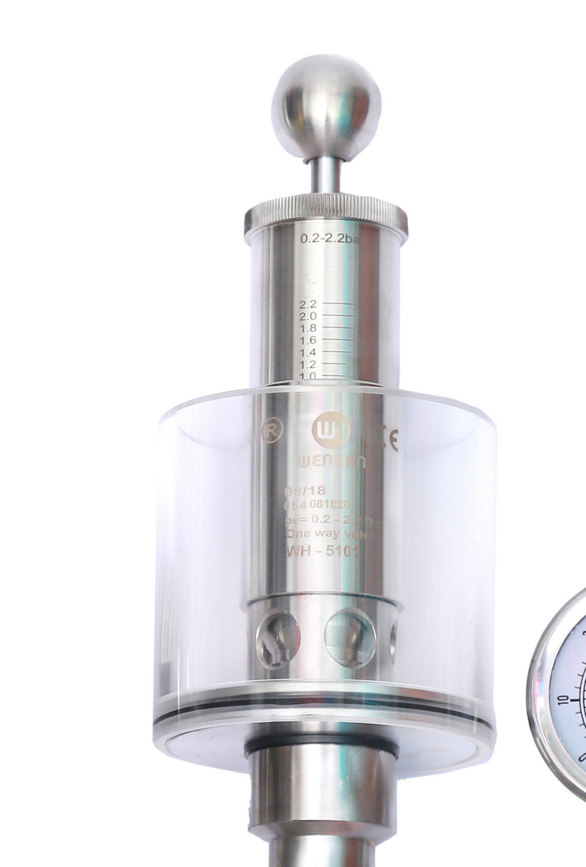 調(diào)節(jié)單向排氣閥保護(hù)容器壓力過高防爆作用,當(dāng)壓力高于設(shè)定壓力(標(biāo)準(zhǔn)1BAR)時(shí)可以排氣,反之關(guān)閉,調(diào)節(jié)桿標(biāo)上壓力刻度,所需壓力按刻度上調(diào)整,該閥門使用方便,刻度準(zhǔn)確,玻璃罩加水能看到發(fā)酵效果,減少染菌。同時(shí)也可以滿足于各種生產(chǎn)工藝需求,適用于各種食品加工,啤酒,飲料以及制藥等各種工業(yè)領(lǐng)域。
