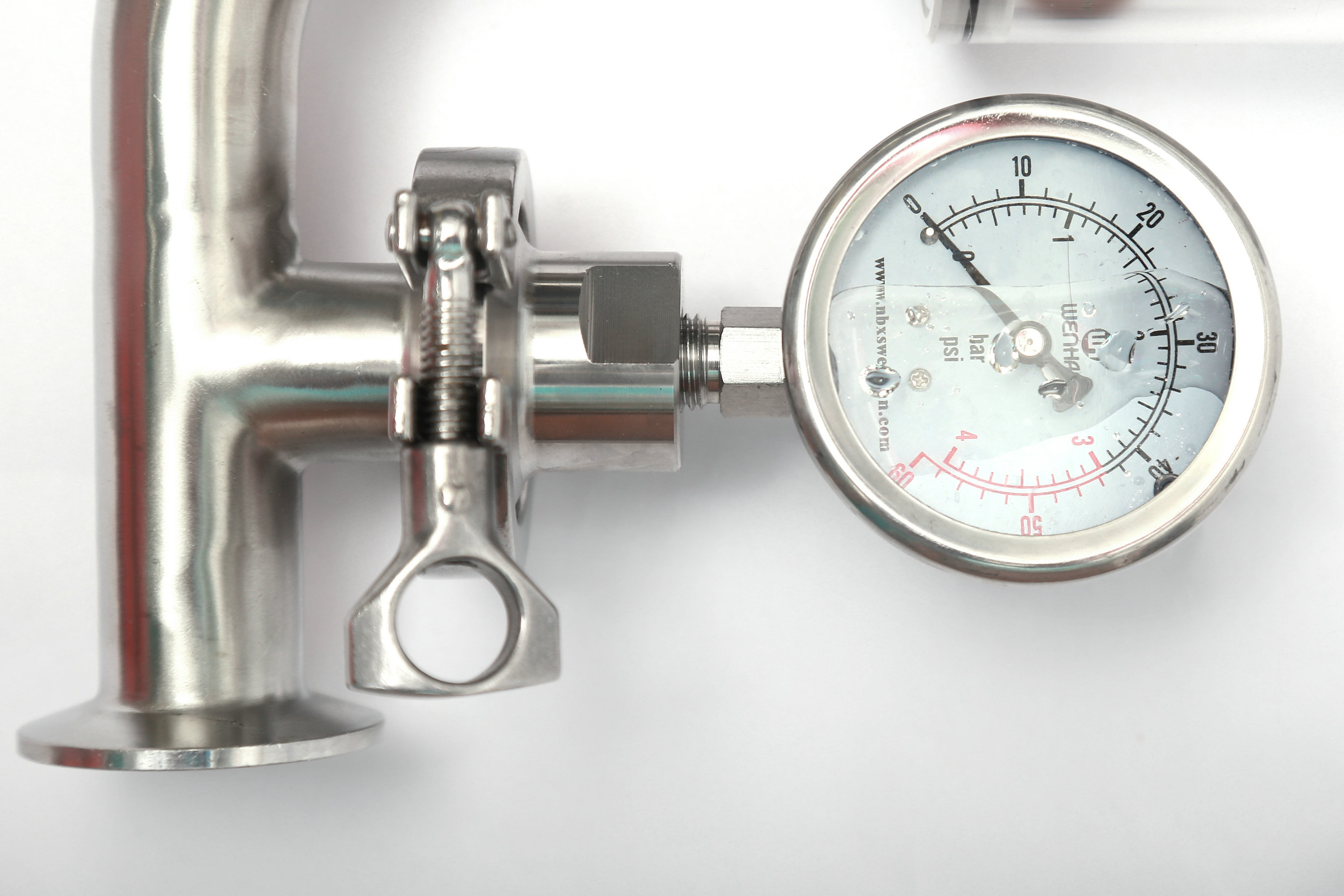Wh-5101A鏈接;快裝 卡箍 隔膜式壓力表 ,隔膜卡盤Φ50.5,表盤Φ60 壓力范圍0-4bar 防震.手動式,旋鈕調(diào)節(jié)刻度壓力。
