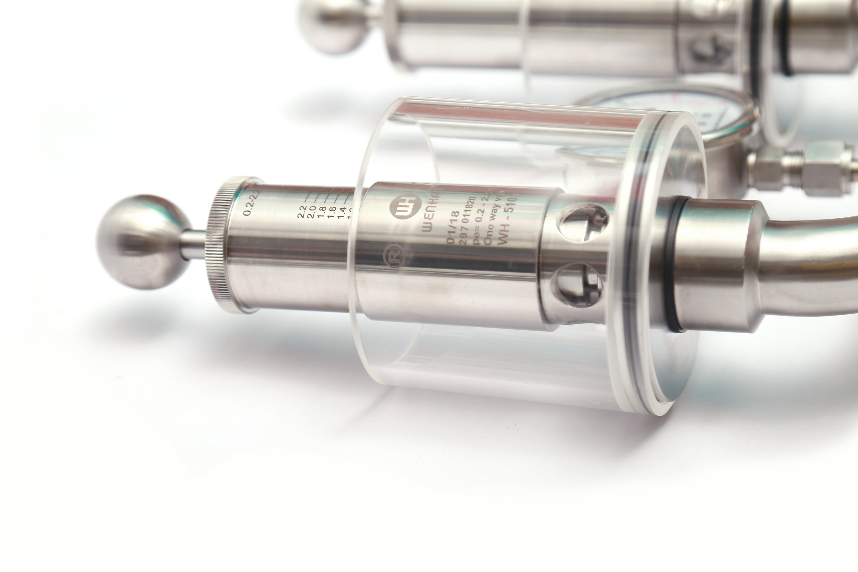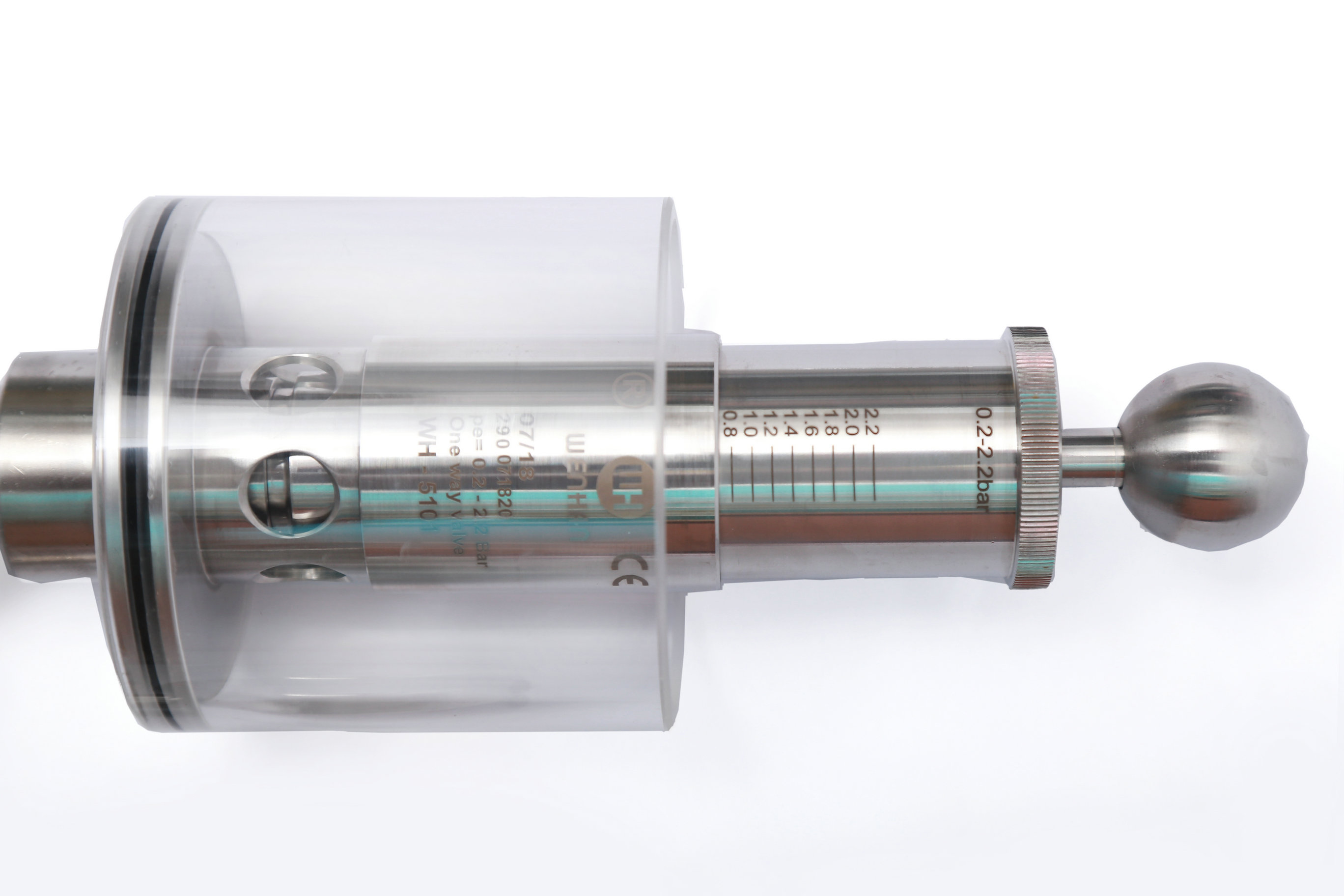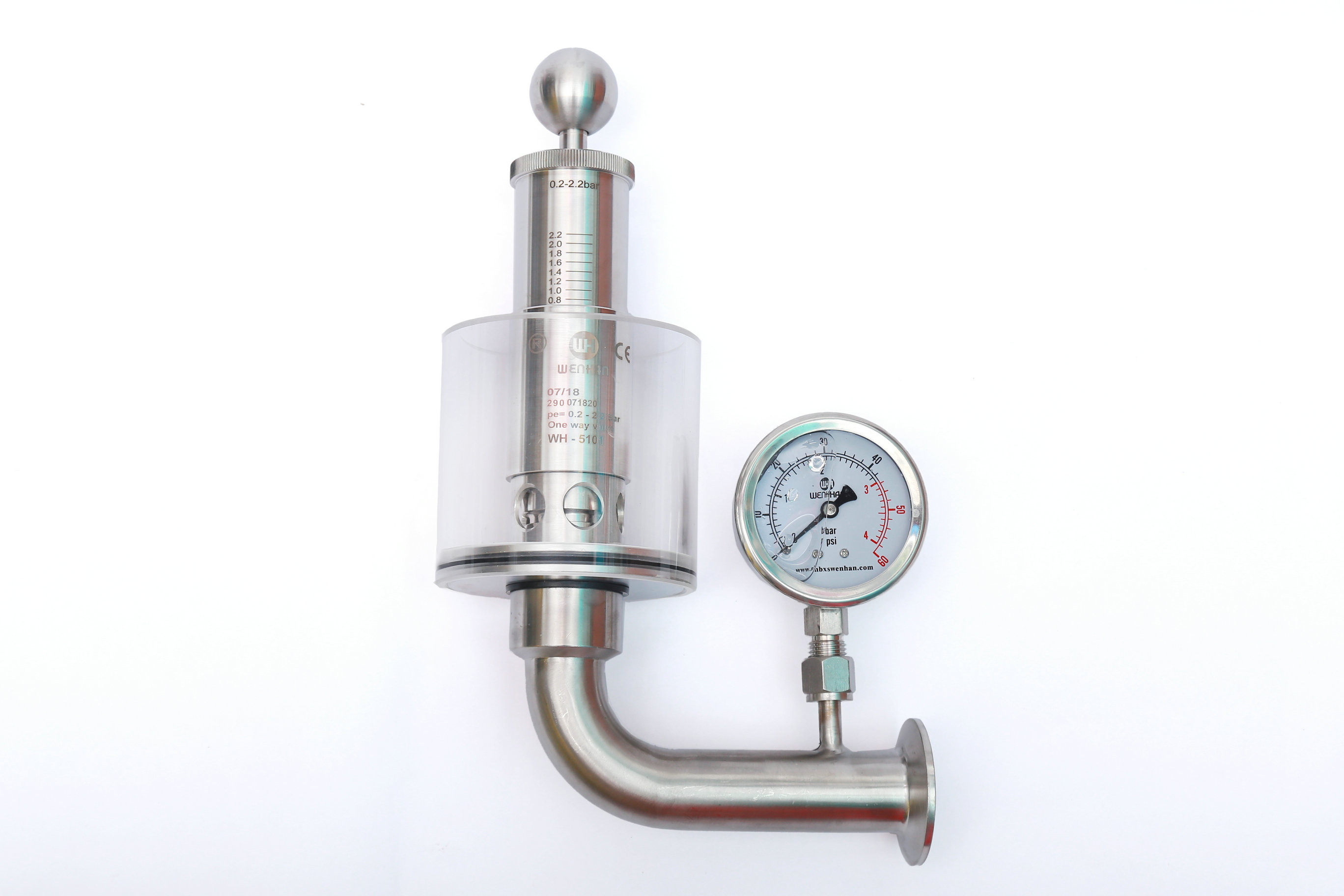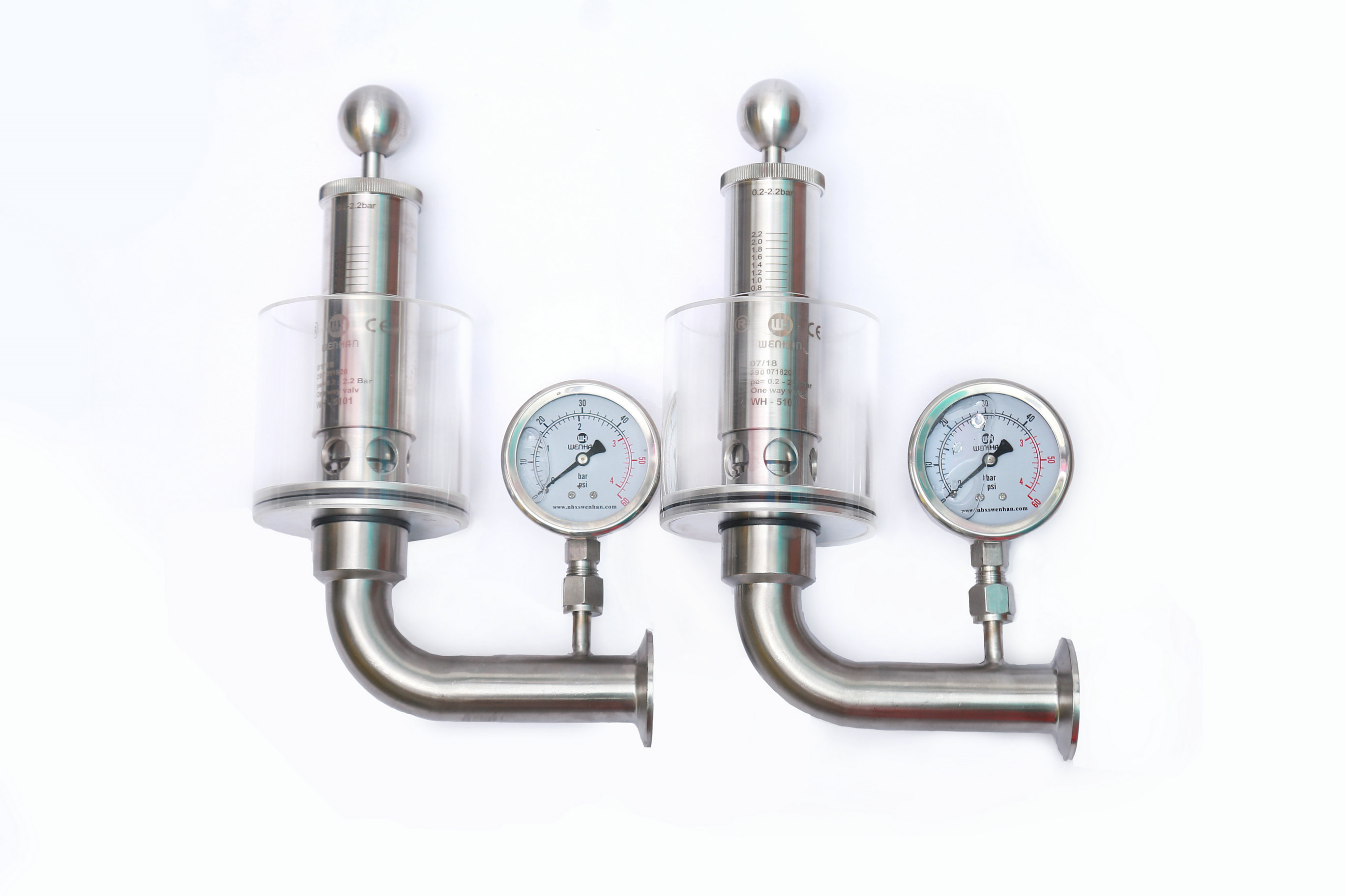 調(diào)節(jié)單向排氣閥保護(hù)容器壓力過(guò)高防爆作用,當(dāng)壓力高于設(shè)定壓力(標(biāo)準(zhǔn)1BAR)時(shí)可以排氣,反之關(guān)閉,調(diào)節(jié)桿標(biāo)上壓力刻度,所需壓力按刻度上調(diào)整,該閥門使用方便,刻度準(zhǔn)確,玻璃罩加水能看到發(fā)酵效果,減少染菌。同時(shí)也可以滿足于各種生產(chǎn)工藝需求,適用于各種食品加工,啤酒,飲料以及制藥等各種工業(yè)領(lǐng)域。