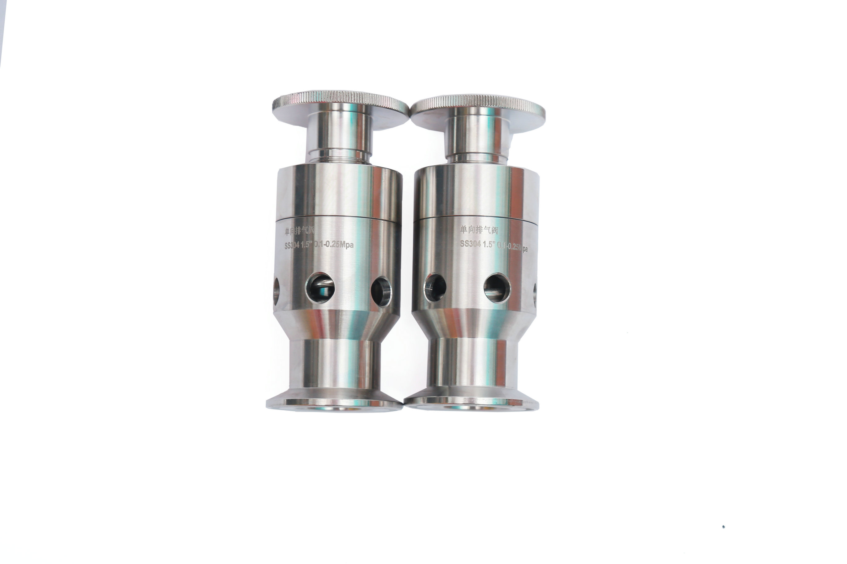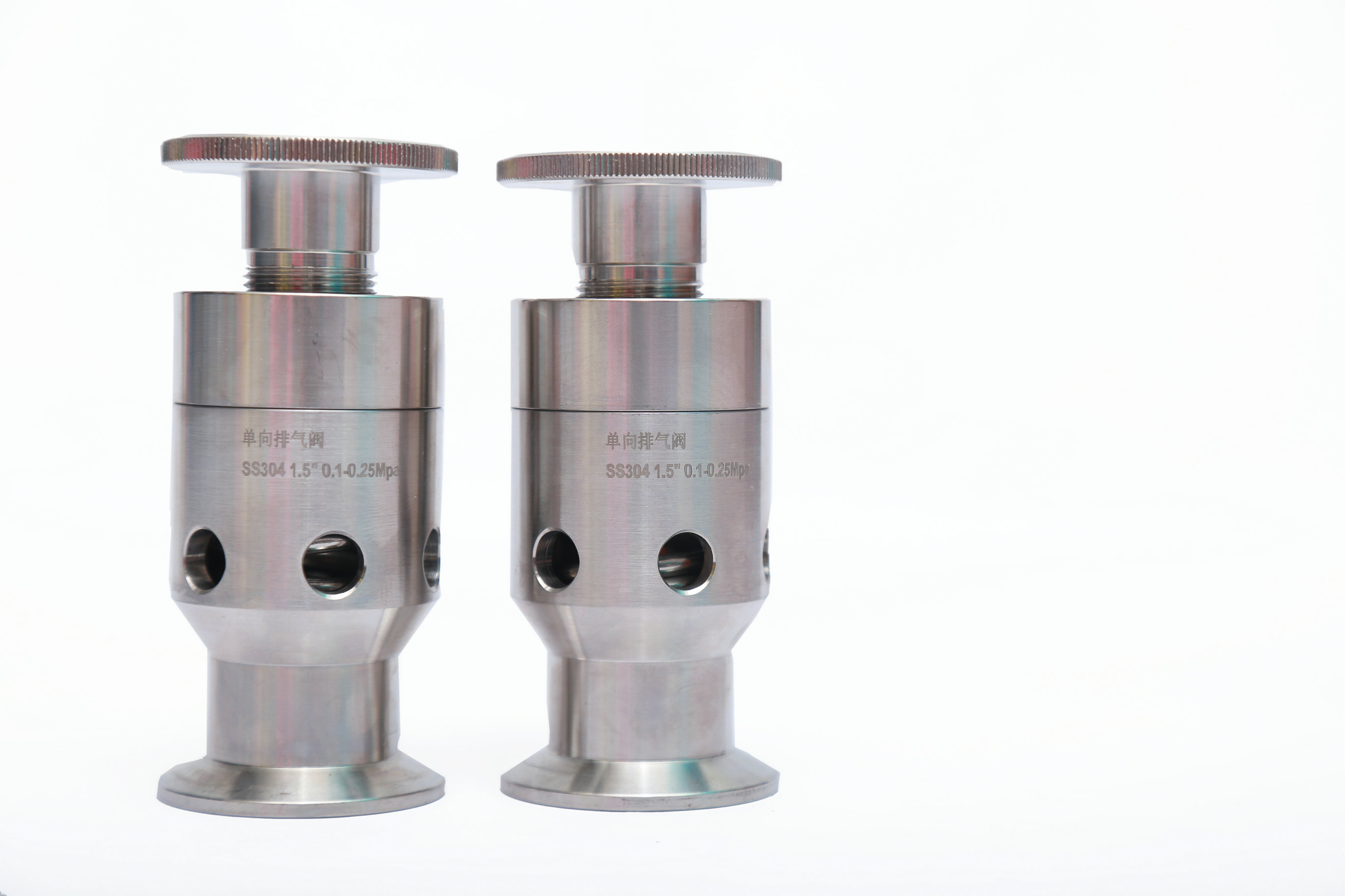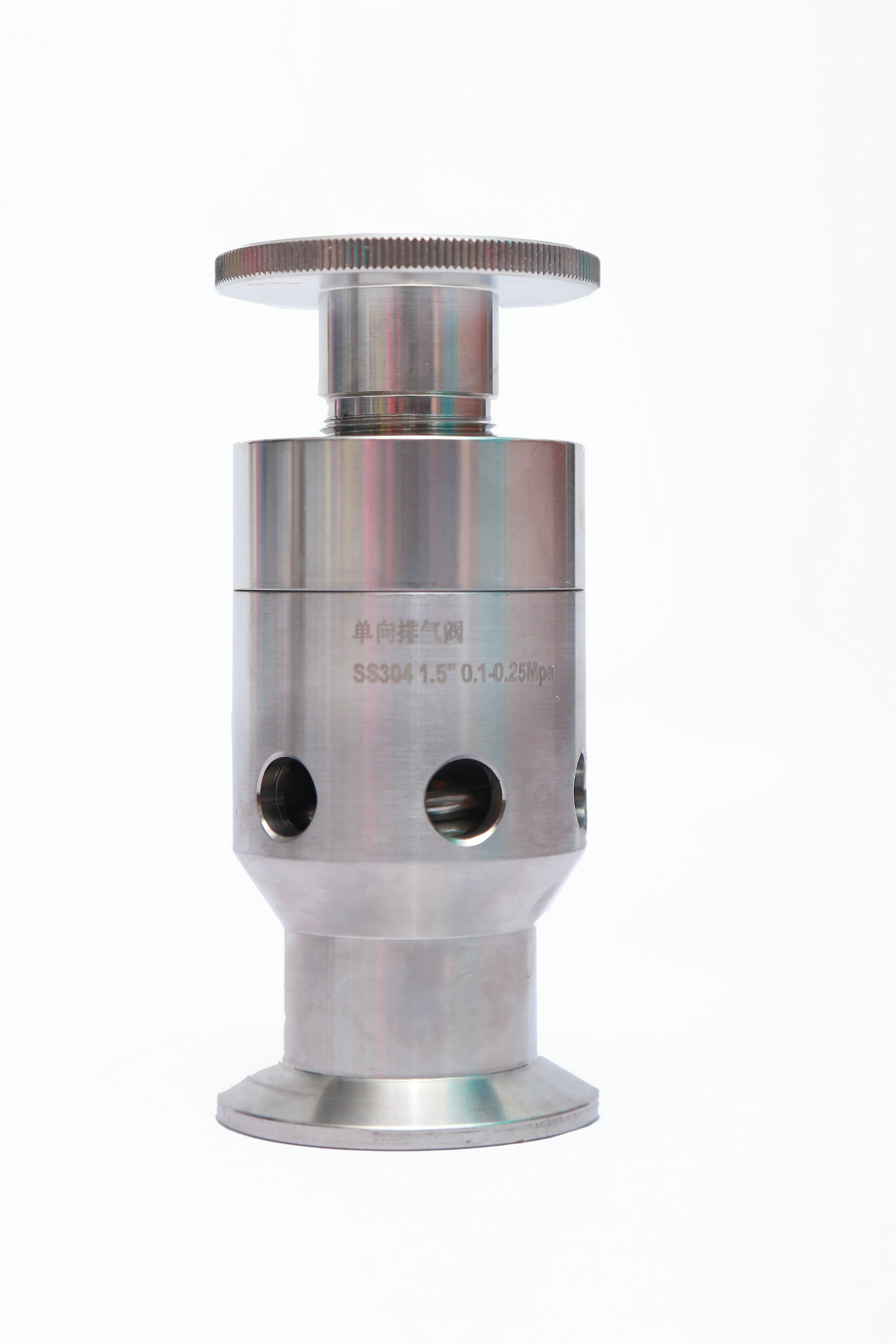 調(diào)節(jié)單向閥,保護容器壓力過高防爆作用,當壓力高于設(shè)定壓力(標準2BAR)時可以排氣,反之關(guān)閉,同時也可以滿足于各種生產(chǎn)需求,進行調(diào)節(jié)壓力,該閥門不銹鋼材質(zhì),衛(wèi)生設(shè)計,滿足于各種食品加工,啤酒,飲料以及制藥等各種工業(yè)領(lǐng)域。
